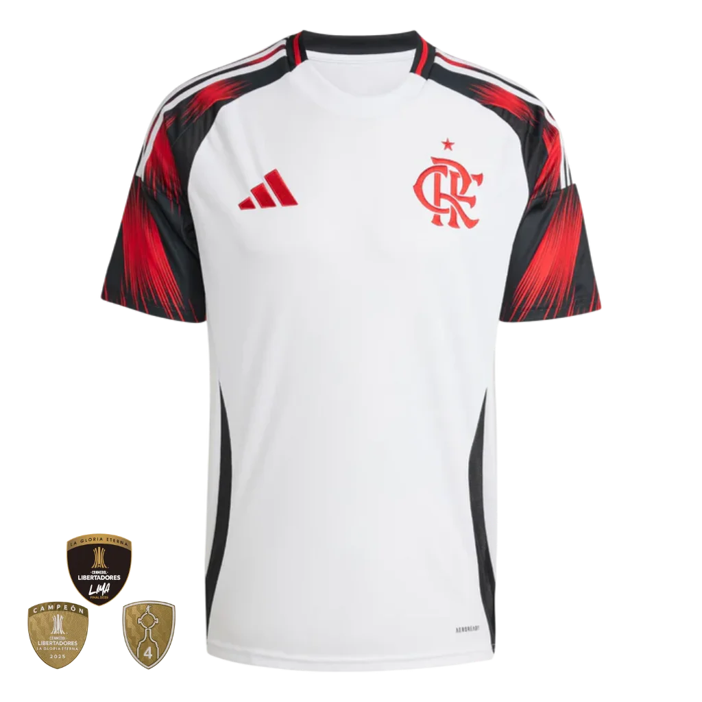 Carregue a história do Mengão onde quer que você vá. A nova Camisa Reserva do Flamengo 25/26 (Branca) chega com um visual limpo, clássico e sofisticado, destacando o orgulho Rubro-Negro nos detalhes. É o traje perfeito para quem quer torcer com classe ou compor um visual de presença no dia a dia.